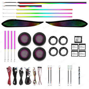 شريط اضاءة سيمفونية للسيارة, شريط اضاءة لتغطية الجسم بالكامل باللون الأحمر والأخضر والأزرق ، 64 لون ، ضوء ليد داخلي خفي من مادة الأكريليك ، إضاءة اضاءة مخفية لجو سيمفونية ، 18 في 1